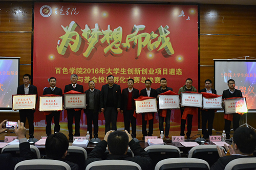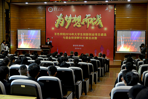12月30日上午,我校2016年大學生創(chuàng)新創(chuàng)業(yè)項目遴選與基金投資孵化大賽總決賽在澄碧校區(qū)公共實驗中心報告廳隆重舉行。學校領(lǐng)導金長義、徐魁峰、羅志發(fā),廣西中意達電氣工程有限公司董事長王國端、總經(jīng)理莫永,環(huán)球集團董事長林愛國,南寧培育圖書有限責任公司董事長劉立新,廣西教苑圖書有限公司總經(jīng)理張琦,深圳國泰安教育技術(shù)股份有限公司昆明泛亞風險投資研究院執(zhí)行院長鮮于鈞,杭州貝騰科技有限公司廣西區(qū)域負責人方能,百色市平速辦公設備有限公司總經(jīng)理付紅亮,百色市百晟廣告策劃有限公司總經(jīng)理黃志明等企業(yè)家出席決賽開幕式,我校各職能部門、各二級學院師生到現(xiàn)場觀看了比賽。副校長徐魁峰、羅志發(fā),教務處處長蘭翠玲以及到會企業(yè)家擔任了總決賽評委。 校長金長義在開幕式上致辭,向長期以來關(guān)心、支持我校發(fā)展的各企業(yè)代表及社會各界人士表示衷心的感謝。金校長表示,我校近年來一直響應國家“雙創(chuàng)”號召,積極摸索地方應用型本科高校創(chuàng)新創(chuàng)業(yè)教育特色道路,探索出校企合作協(xié)同育人的創(chuàng)新創(chuàng)業(yè)教育體系。金校長認為,各企業(yè)在我校成立“百色學院創(chuàng)新創(chuàng)業(yè)公益基金”,將促使我校創(chuàng)新創(chuàng)業(yè)教育特色更加鮮明,學生們的創(chuàng)新創(chuàng)業(yè)道路更加寬廣。希望全校教師以大賽為契機,做好創(chuàng)新創(chuàng)業(yè)教育工作,培育更多創(chuàng)新創(chuàng)業(yè)人才;全校同學以大賽為平臺,啟迪自身智慧,開拓視野,互相交流學習,練就創(chuàng)新創(chuàng)業(yè)本領(lǐng)。 莫永總經(jīng)理代表企業(yè)致辭,希望同學們通過這次大賽,充分展示自己的創(chuàng)業(yè)項目,提高自身的創(chuàng)新創(chuàng)業(yè)能力,抓住這個良好的發(fā)展機遇,成就自己的創(chuàng)業(yè)夢想。 開幕式還進行了百色學院大學生創(chuàng)新創(chuàng)業(yè)公益基金揭牌儀式,該基金以前文各企業(yè)名稱命名,基金規(guī)模達到150萬元,主要用于我校師生開展創(chuàng)新創(chuàng)業(yè)活動及大賽項目孵化,有效解決了大學生創(chuàng)業(yè)初期啟動資金難的問題,也使我校校企合作、協(xié)同育人得到進一步升華。 在隨后開始的總決賽上,17組參賽選手結(jié)合PPT,從企業(yè)概述、項目展望、風險因素、投資回報、組織管理、財務預測等方面進行了全面介紹,激情洋溢地闡述了團隊產(chǎn)品及經(jīng)營模式的創(chuàng)新亮點與創(chuàng)業(yè)理念。評委們肯定了選手們的創(chuàng)業(yè)熱情,并結(jié)合參賽團隊特色,給予他們求真務實的可行性建議和指導。尤其是企業(yè)家評委們對項目的分析點評深具市場參考價值,也對我校大學生提出了更高的挑戰(zhàn)及更深入的指導。經(jīng)過激烈角逐,“智慧家居”獲得一等獎及20000元項目啟動資金,艾普斯教育科技、Promise攝影工作室獲得二等獎及各10000元項目啟動資金,校園第一站特產(chǎn)等獲得三等獎及各5000元項目啟動資金;新一閣家教輔導中心等10支參賽隊伍獲得優(yōu)秀獎及各1000元項目啟動資金。 據(jù)悉,本次大賽由教務處主辦,中科創(chuàng)業(yè)學院承辦,于12月初開始,持續(xù)近一個月,報名初期總共收到91個創(chuàng)新創(chuàng)業(yè)項目計劃書,共800多名師生參與本次大賽。與去年同期相比參賽師生及項目數(shù)量均增加了約30%。 此次大賽為我校大學生創(chuàng)業(yè)提供了廣闊的平臺,賽前還通過培訓使參賽學生參與創(chuàng)業(yè)實戰(zhàn)來增強創(chuàng)新意識與創(chuàng)意思維,培養(yǎng)創(chuàng)業(yè)精神、提高創(chuàng)業(yè)能力、提升創(chuàng)業(yè)素質(zhì),激發(fā)大學生的創(chuàng)業(yè)潛能和熱情,引導廣大師生積極參與自主創(chuàng)新,投身創(chuàng)業(yè)實踐,搭建好項目與資金的對接平臺,全面推進了我校大學生創(chuàng)新創(chuàng)業(yè)工作。 |